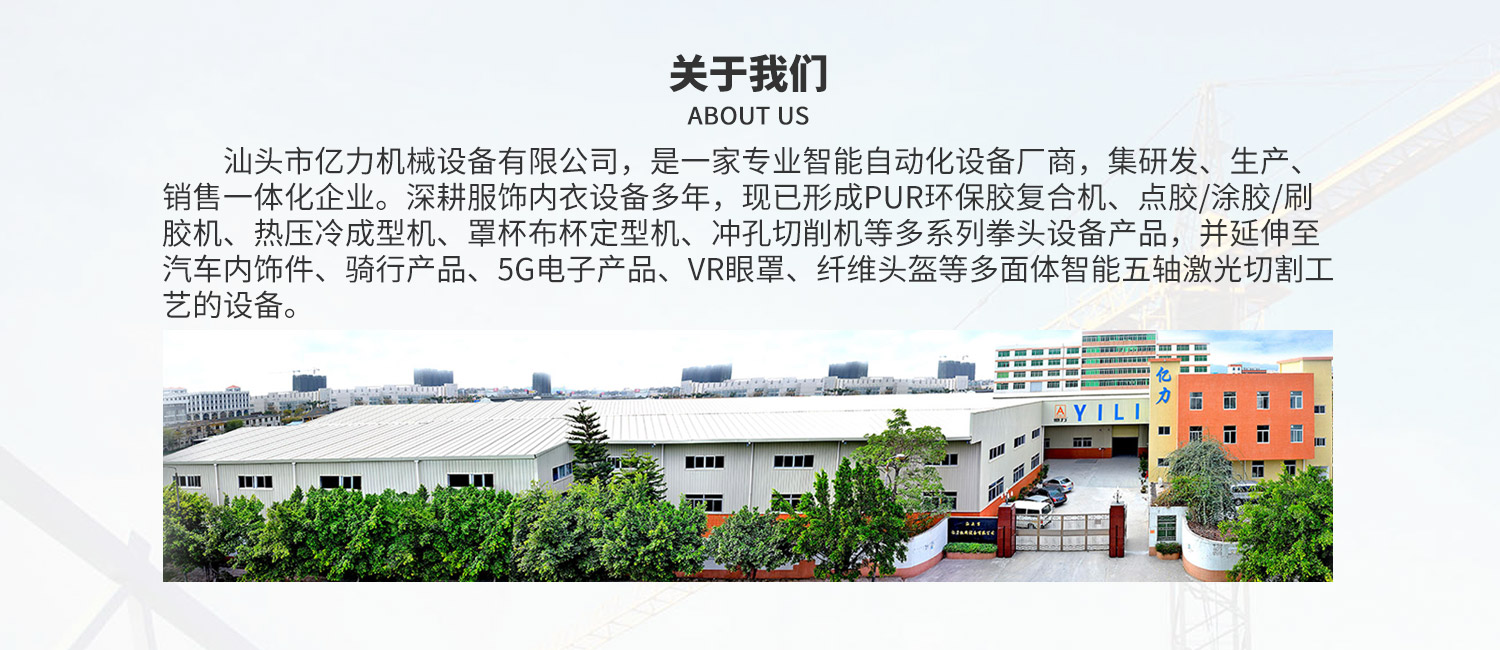 汕頭市億力機(jī)械設(shè)備有限公司網(wǎng)站正式上線! 汕頭市億力機(jī)械設(shè)備有限公司是一家集研發(fā)、生產(chǎn)銷售于一體的專業(yè)性面料貼合機(jī)械、胸圍模杯機(jī)械、無(wú)縫工藝鞋面機(jī)械、口罩生產(chǎn)線和焊耳帶機(jī)械企業(yè)。